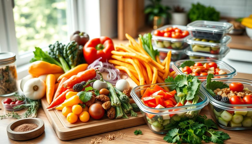 Good nutrition is key to staying healthy. Low calorie meal prep gives you the right balance of nutrients. It includes foods like lean proteins, whole grains, and fresh fruits and veggies.